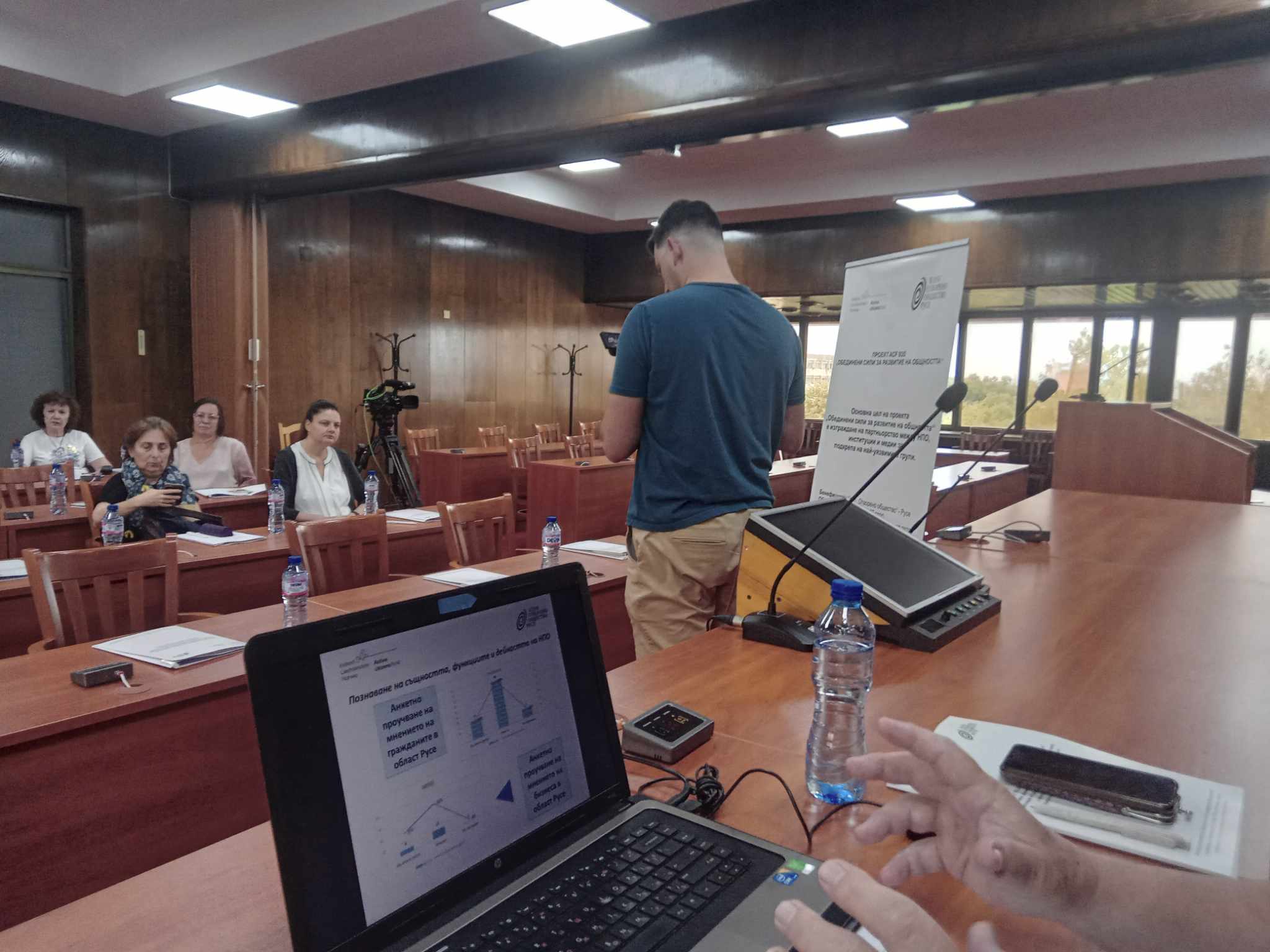 Акцент на събитието бе представянето на доклад за резултатите от проучване на мнението на гражданите и бизнеса в Област Русе за равнището на обществено доверие в НПО и изграждане на партньорство в подкрепа на уязвимите групи на регионално ниво.